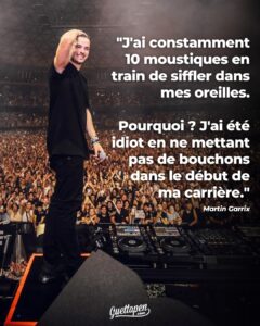 On peut être atteint de surdité (partielle ou complète) mais aussi d’hyperacousie (sons très désagréables) ou encore d’acouphènes (sifflements, bourdonnements) pour la vie !