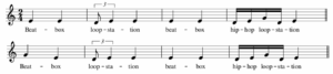 Autres exemples avec la voix : en scat (forme de jazz vocal avec des onomatopées) et en Beatbox